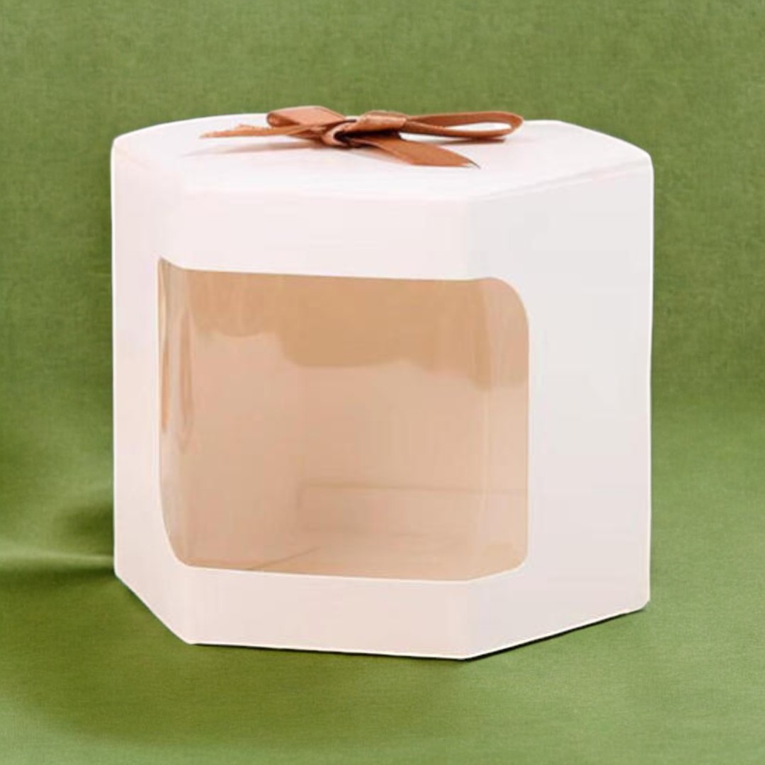 Windowed Cake Boxes: Feature extra-large transparent panels so the craftsmanship is visible without opening the lid.
